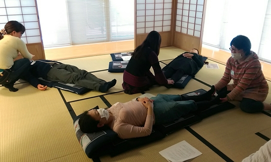 みなさん、真剣にヒーリングを練習しています。。。